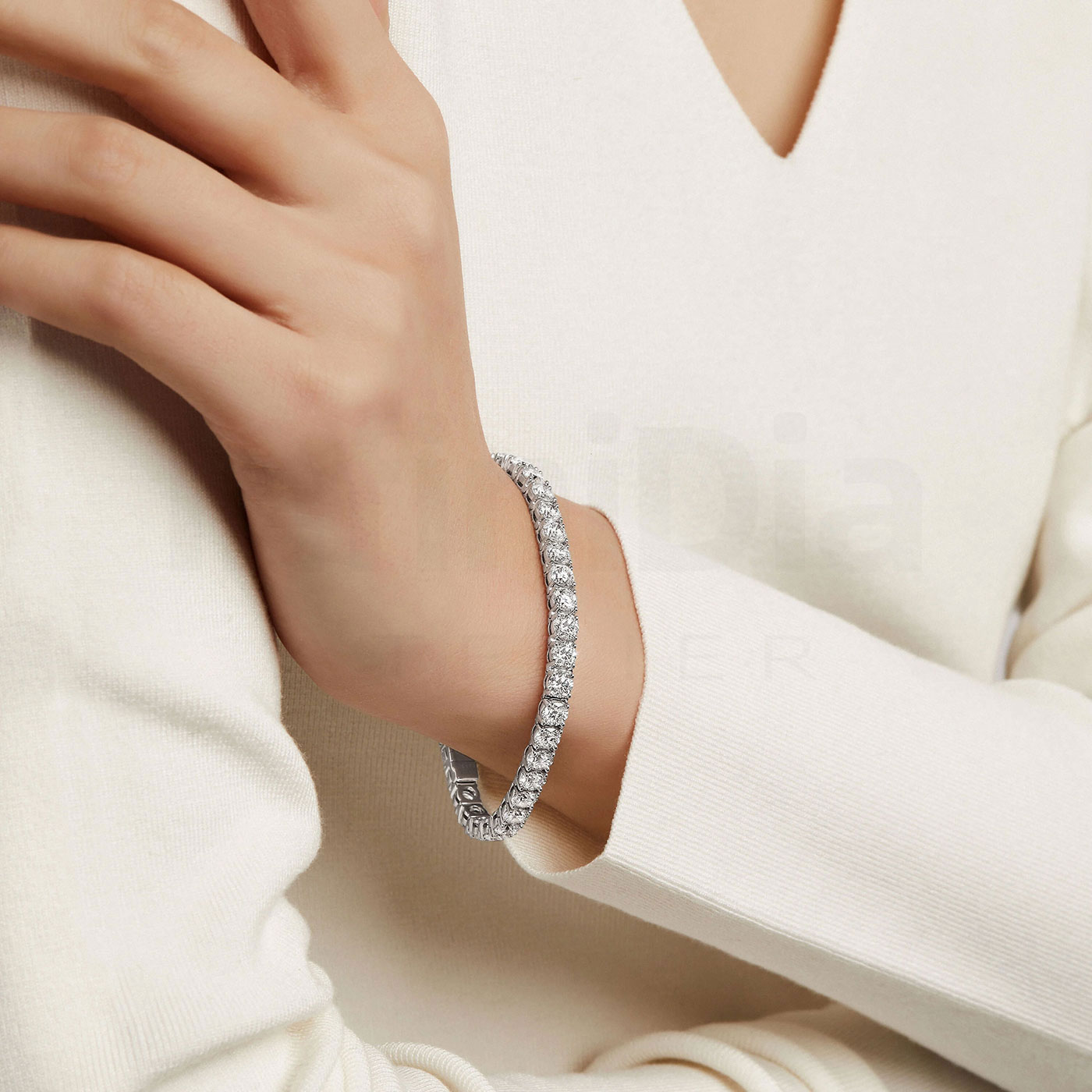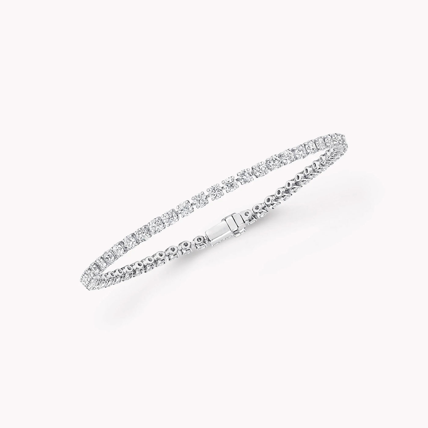 The Tennis Bracelet is a classic and elegant bracelet design, typically featuring a continuous row of uniformly sized diamonds or gemstones, set in delicate metal settings to create a look that is both minimalistic and luxurious.